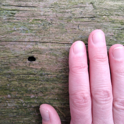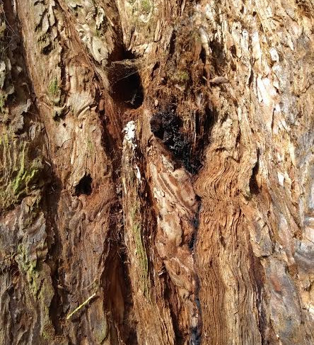 You might spot some nest holes in trees too. Both woodpeckers and treecreepers nest in holes – the white streak of droppings and small size give this one away as a treecreeper nesting hole. Some species of beetle also make use of trees to rear their young. The larvae eat their way out through larval galleries and emerge through exit holes. Look out for small holes in tree trunks – oval ones are often the work of longhorn beetles while the small, circular ones could be the work of a bark beetle.